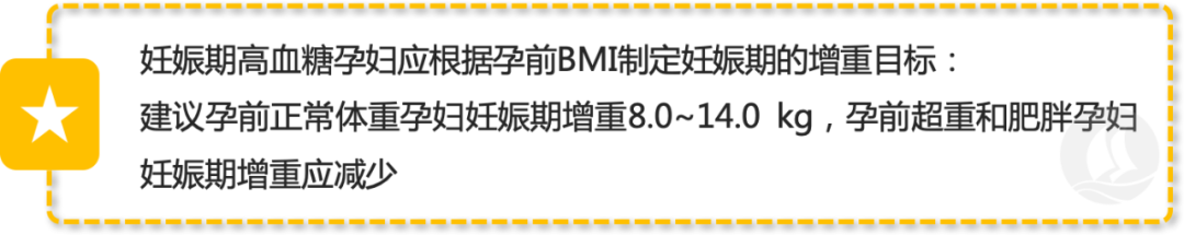 不建议孕前超重和肥胖的妊娠合并糖尿病孕妇在整个妊娠期过度限制能量和减重,对于孕前肥胖的妇女,应减少30%的热量摄入,且摄入量不应低于1600~1800 kcal/d。
