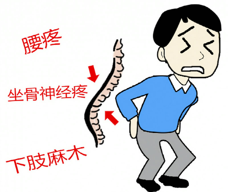 腰椎间盘突出症在中老年人群中比较常见,尤其是长期坐着工作的人或多弯腰劳动的人。由于腰椎间盘压迫了神经根,所以这种腰痛还可合并臀部、腿部麻木不适及疼痛、痛触觉减退、大小便功能障碍等症状,表现为放射性疼痛,可由臀部向大腿后外侧、小腿、足背部发散。