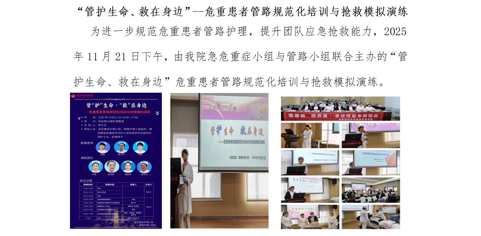 - “管护生命、救在身边”--危重患者管路规范化培训与抢救模拟演练 2025-12-11