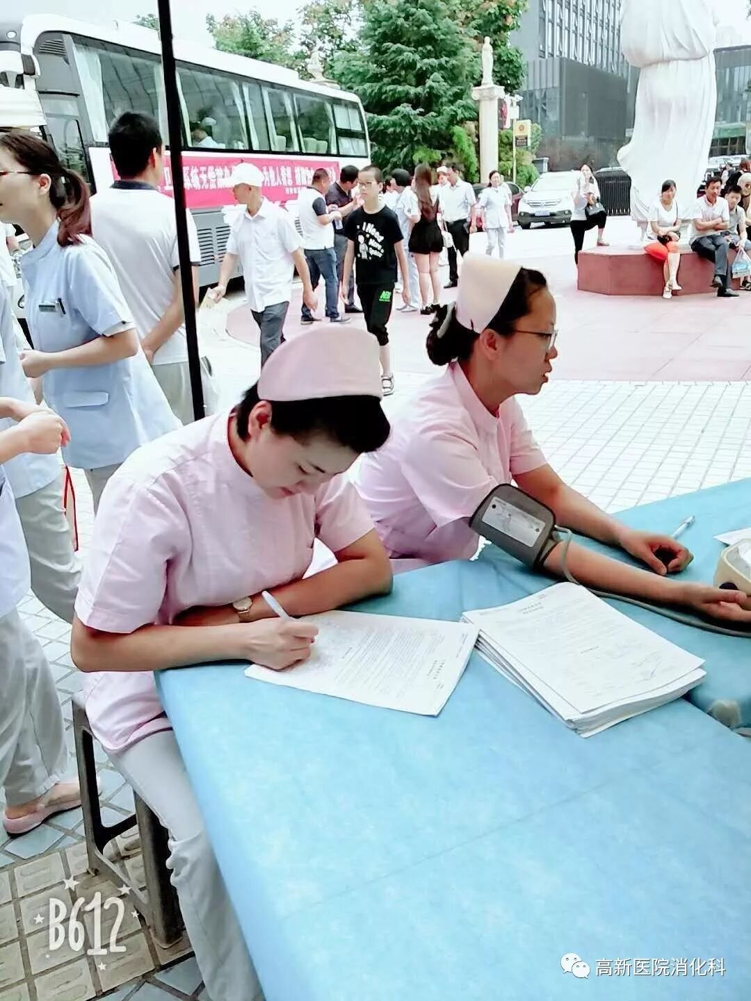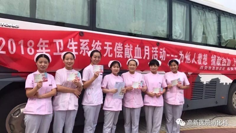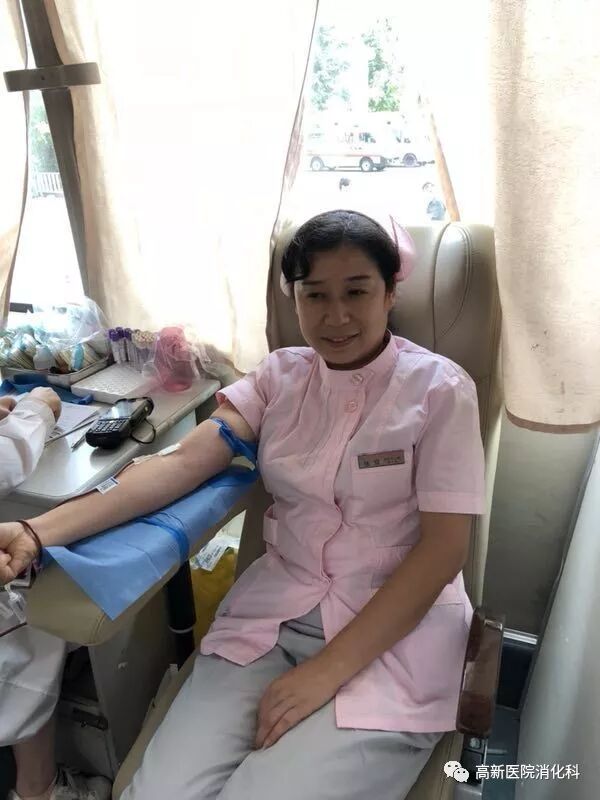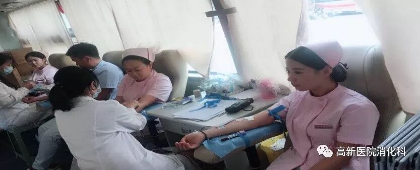 活动刚开始,我们消化内科的全体医务工作者在主任和三位护士长的带领下,积极响应市中心血站的号召,本着“爱心传递正能量”的口号,踊跃加入到献血队伍中,我们张彩燕护士长系稀Rh阴性有血型,不顾身体瘦弱献血400ml;李建宏护士长、张双护士长也积极献血400ml,我们的雷婵护士,别看她瘦小,也不甘示弱,献血200ml;更有胃镜室的护士们,一完成内镜室的检查工作,立即组团献血。