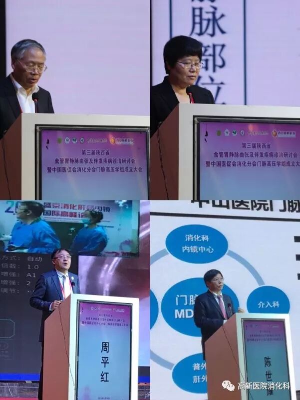 15日下午在西安瑞斯丽酒店举办了中国医促会消化分会门脉高压学组成立大会。16日早上由本次大会执行主席、陕西省食管胃静脉曲张协作组组长、西安高新医院宋瑛副院长宣布大会开幕,在开幕式上分别由西安高新医院马庆久院长、中华医学会消化内镜分会食管胃静脉曲张学组组长令狐恩强教授、西安市医学会葛移繁会长、陕西省保健协会耿庆义名誉会长等领导分别上台致辞。