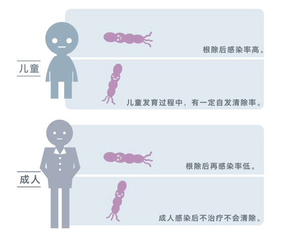 3.儿童在其生长发育过程中,有一定的自发清除率,大约10%左右,而成人Hp感染,不经治疗,不可能自发清除。