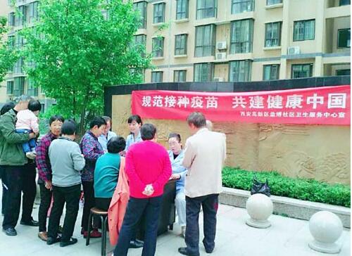 2017年4月25日是我国第31个预防接种日,本次活动的主题是“规范接种疫苗,共建健康中国”。西安高新区蓝博社区卫生服务中心走进海棠别管小区开展了宣传活动,倡导市民科学防疫疾病,规范接种疫苗,为儿童构建健康成长环境。