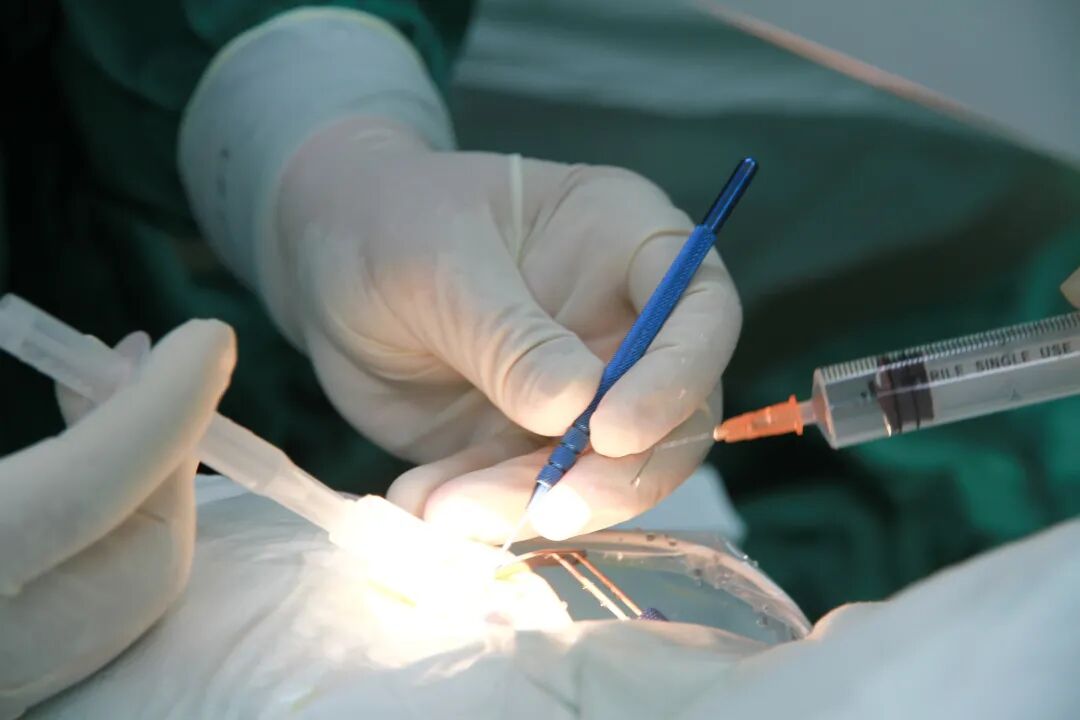 目前白内障手术大多的手术方式为小切口超声乳化摘除术+人工晶体植入术,手术采用点眼药水的方式进行术眼的表面浸润麻醉后,用超乳仪器将浑浊的晶体粉碎后吸出,置入人工晶体即可。术后休息一天,第二天患者即可出院,回家遵医嘱滴眼药水,避免弯腰低头,使劲咳嗽,饮食方面以清淡易消化饮食为主,避免便秘,早期避免疲劳用眼。